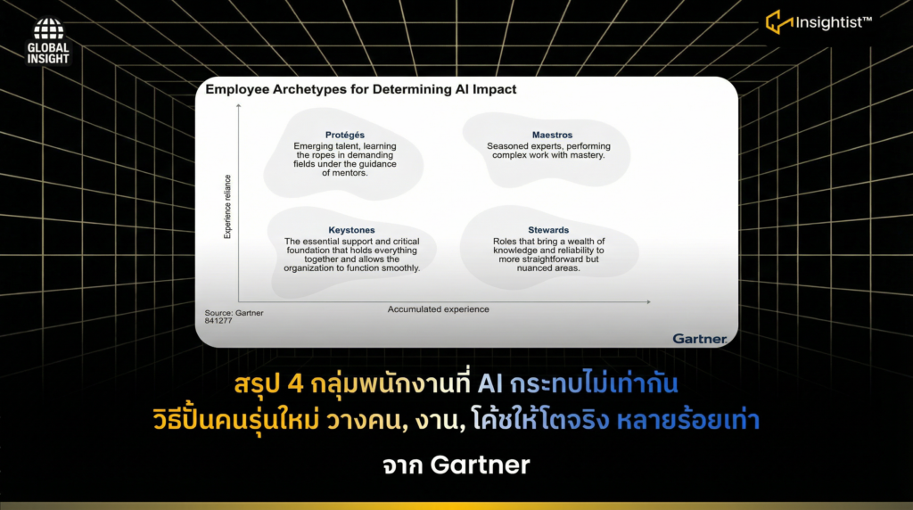 สรุป 4 กลุ่มพนักงานที่ AI กระทบไม่เท่ากัน วิธีปั้นคนรุ่นใหม่ วางคน, งาน, โค้ชให้โตจริง หลายร้อยเท่า จาก Gartner