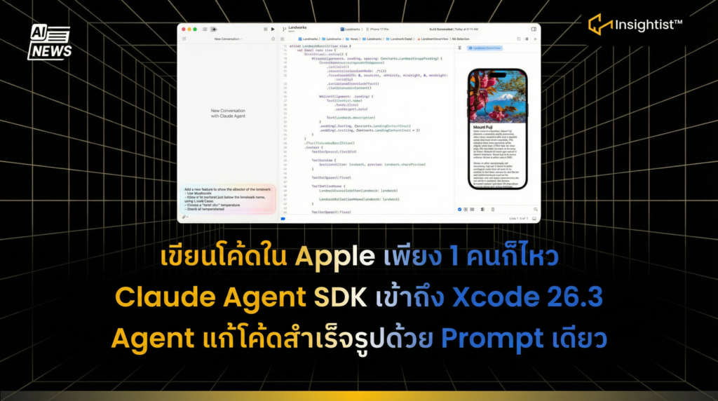 เขียนโค้ดใน Apple เพียง 1 คนก็ไหว Claude Agent SDK เข้าถึง Xcode 26.3 Agent แก้โค้ดสำเร็จรูปด้วย Prompt เดียว