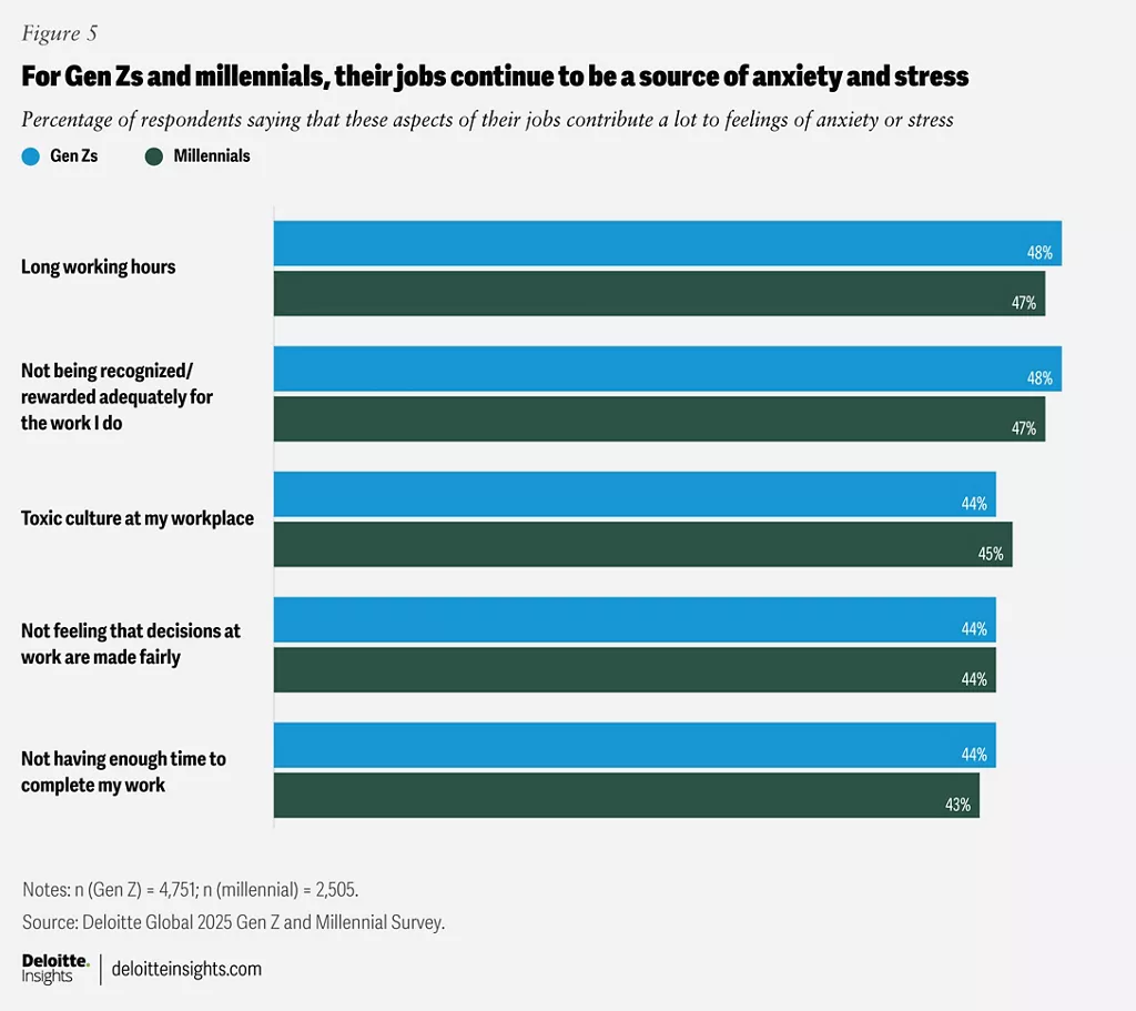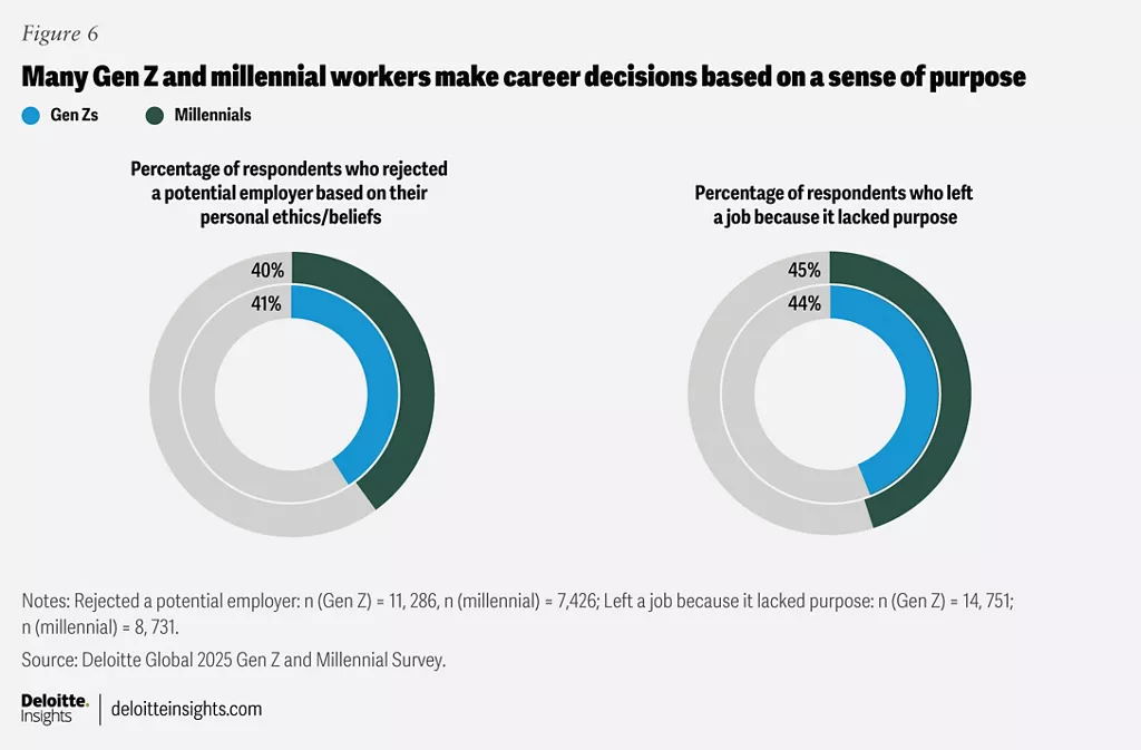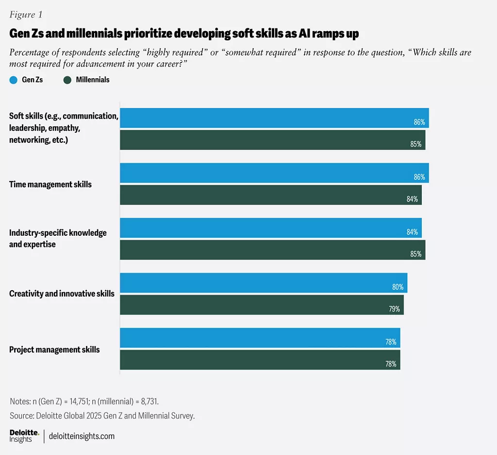 แบบสำรวจ Gen Z and Millennial Survey ของ Deloitte Global ที่ทำมาถึงปีที่ 14 ผลลัพธ์จากการสำรวจปี 2025 ซึ่งมีผู้ตอบ 23,482 คนจาก 44 ประเทศ พบว่า การเติบโต คือ เส้นเรื่องสำคัญของ 2 Gens นี้ แต่พวกเขาก็กำลังกำหนดความหมายของคำว่า เติบโตในงานใหม่ มันไม่ใช่เรื่องไต่บันไดอีกต่อไป