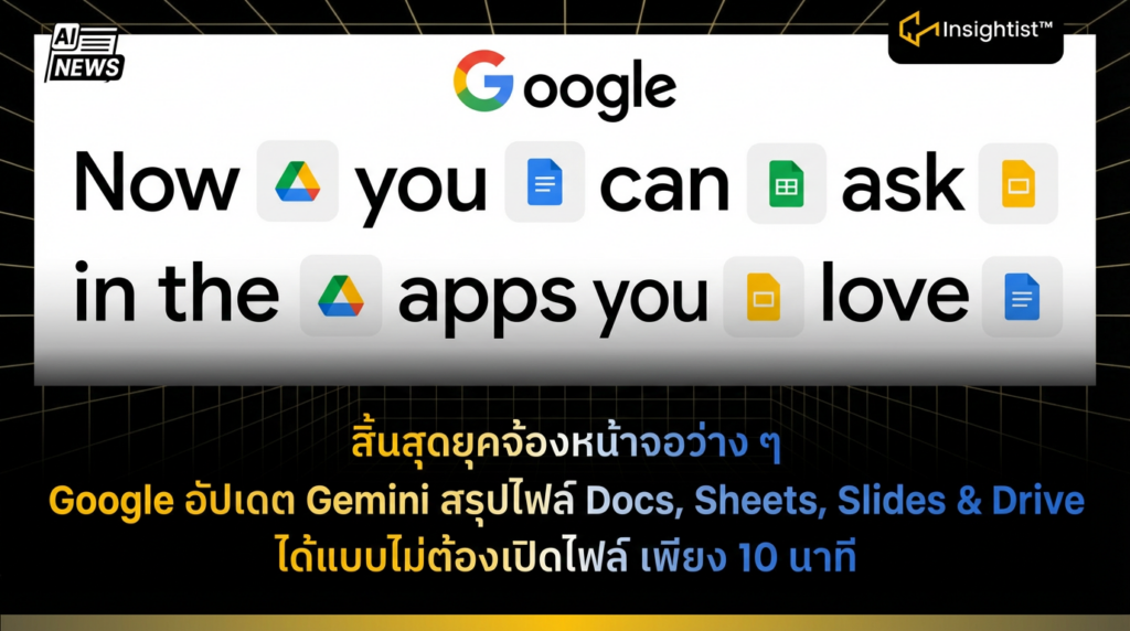 10 มีนาคม 2569 Google เพิ่งประกาศอัปเดตใหญ่ให้ Gemini ใน Google Workspace (Docs, Sheets, Slides, Drive) ครับ