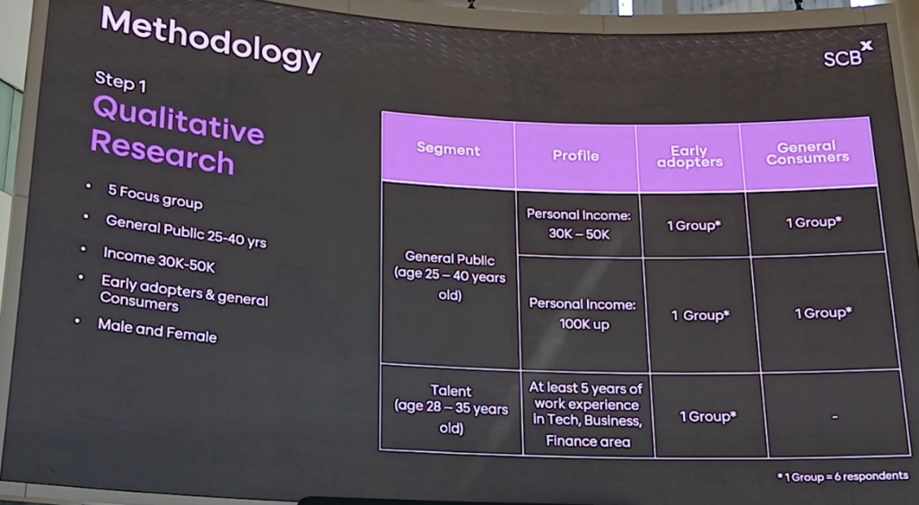 - ทำการวิจัยเชิงคุณภาพ ด้วยการสัมภาษณ์กลุ่มย่อย 5 กลุ่ม โดยแบ่งตาม: