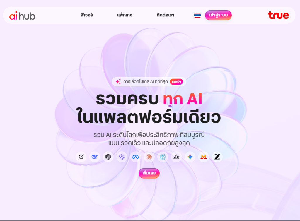 True AI Hub ที่รวมเครื่องมือ AI หลายค่ายไว้ในที่เดียว ทำให้ทีมเลิกเสียเวลากับการสลับหลายแอปแล้วกลับมาโฟกัสที่งานจริง งานไหลลื่นขึ้นและคุ้มค่าใช้จ่ายได้ง่ายขึ้น สามารถเลือกใช้ AI ให้เหมาะกับงานแบบไม่ต้องเดา ไม่ว่าจะสรุปเอกสาร วิจัย ทำคอนเทนต์ เขียนโค้ด หรือทำภาพ ก็ทำได้เร็วขึ้นและคุณภาพนิ่งขึ้น ช่วยให้ทุกคนทำงานเร็วขึ้นในทิศทางเดียวกัน ลดความเสี่ยงเรื่องข้อมูล และใช้งานจริงแบบวัดผลได้