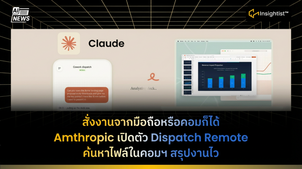 17 มีนาคม 2569 Anthropic เปิดตัว Dispatch ฟีเจอร์ใหม่ที่เปลี่ยนมือถือของคุณให้เป็น Remote Control สั่งงาน Claude ที่อยู่บนคอมพิวเตอร์ของคุณได้จากทุกที่ ในเวอร์ชั่น Research Preview