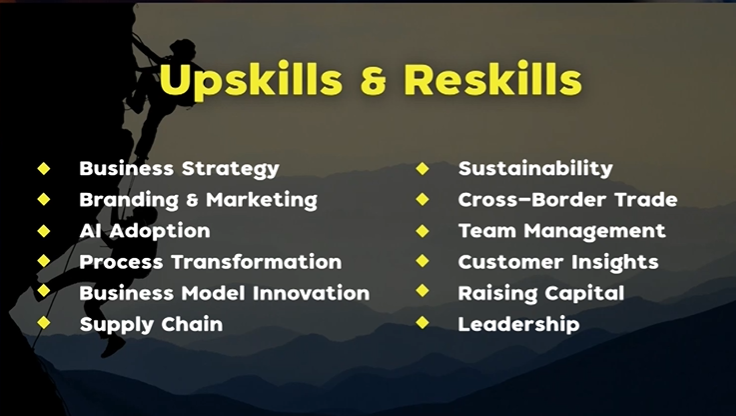 - Up-Reskill เรื่องที่กระทบรายได้ทันที (กลยุทธ์ การตลาด การใช้ AI การขาย/ซัพพลายเชน ฯลฯ) แล้วทดลองเป็นรอบ 30 วัน: เรียน → ลอง → วัดผล → ปรับ