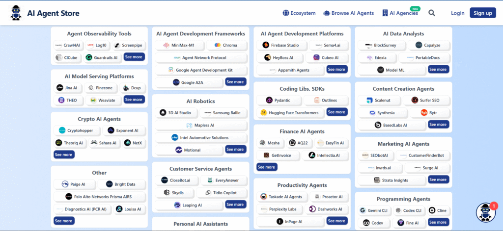 AI Agent Store เป็นเว็บที่รวมตัวช่วยอัจฉริยะไว้เพียบ ทั้งแ Chatbot, Robotics, Voice Agent, Automation Tools จนถึง Framework สำหรับพัฒนา AI Agent ขั้นสูง มีให้ใช้แบบสำเร็จรูปหรือ สร้างเองก็ทำได้ เพราะมีเครื่องมือช่วยพัฒนาแบบครบ ๆ เลย